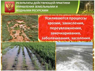 Ситуация усугубляется тем, что усиливаются процессы деградации земель – эрозии, закисления, переувлажнения, закочкаривания, заболачивания, засоления.