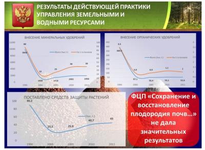 При том, что в 2013 году завершилась Федеральная целевая программа «Сохранение и восстановление плодородия почв земель сельскохозяйственного назначения и агроландшафтов как национального достояния России», приведенные сведения отражают всю «эффективность» принимаемых решений.