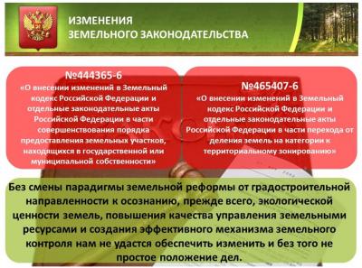 - № 431545-6 «О внесении изменений в отдельные законодательные акты Российской Федерации в части совершенствования государственного земельного надзора».
