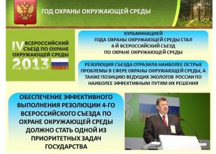 В этой связи нельзя не упомянуть 4-й Всероссийский съезд по охране окружающей среды, ставший масштабной кульминацией объявленного Президентом Российской Федерации Года охраны окружающей среды.