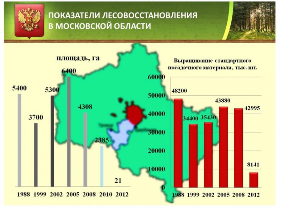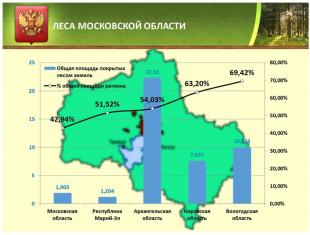 Поднятая в рамках сегодняшнего мероприятия тема является одной из наиболее актуальных для подмосковного региона.Московская областьпочти полностью (за исключением южной половины Серебряно-Прудского района) расположена в лесной зоне.При общей площади региона в 4,4 млн. га, 1,9 млн. га (43%) покрыто лесами.По доле территории, занятой лесами, Подмосковьеблизко к лидирующим «лесным» регионам.
