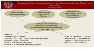Так, общая численность инспекторского состава Волжско-Каспийского и Западно – Каспийского территориальных управлений Росрыболовства на внутренних водоемах составляет всего 258 человек, тогда как объем водного фонда волжско-каспийского рыбохозяйственного бассейна - 503,3 тыс. га.