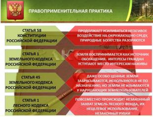 использование земельных, лесных, водных ресурсов, как и неуклонное исполнение