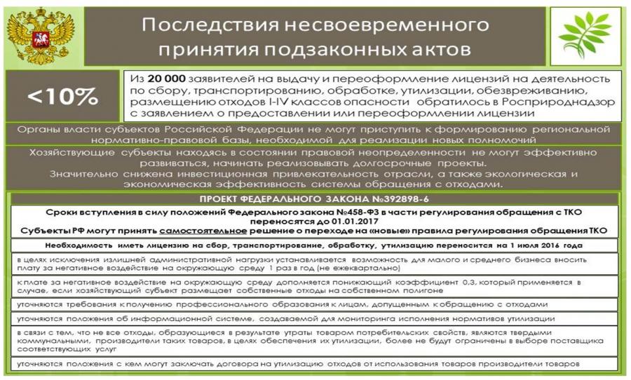 Доклад Заместителя Председателя ЦК КПРФ, Председателя Комитета Государственной Думы по природным ресурсам, природопользованию и экологии, академика РАН В.И. Кашина на заседании Высшего экологического совета при Комитете Государственной Думы по природным ресурсам, природопользованию и экологии по теме: «Совершенствование нормативно-правового регулирования в целях реализации положений федерального закона №458-ФЗ «О внесении изменений в Федеральный закон «Об отходах производства и потребления», 17 декабря 2015 года.