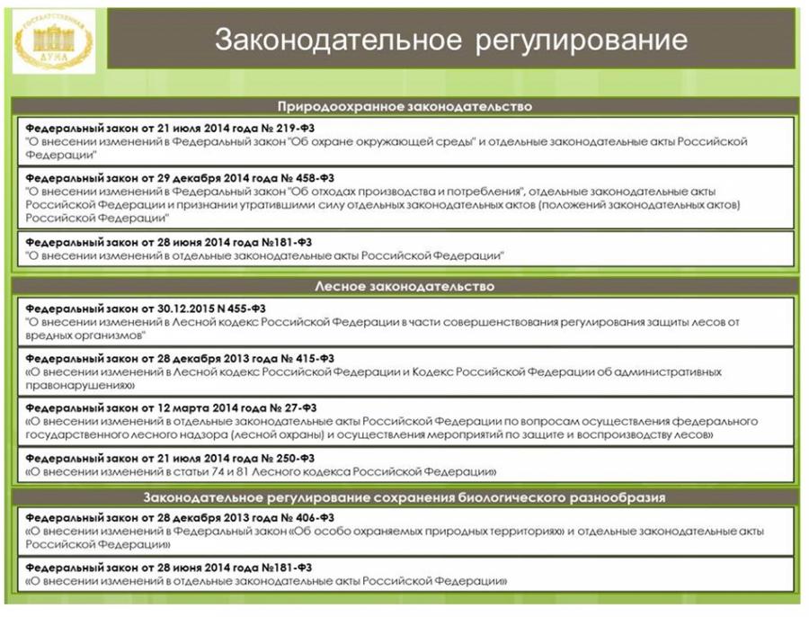 законодательных инициатив в сферах рационального природопользования и охраны