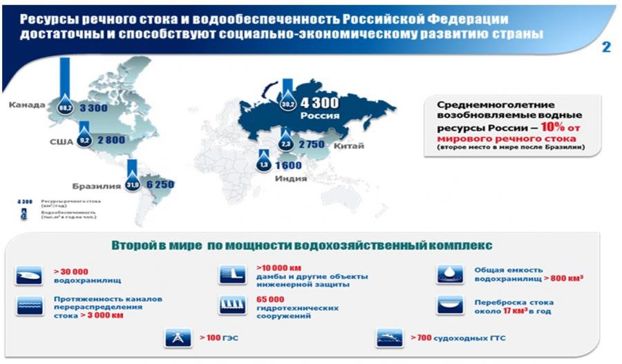наиболее обеспеченных водными ресурсами стран и занимает 2-е место по объему