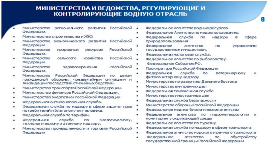 проблемами водной отрасли так или иначе занимаются 36 федеральных ведомств.
