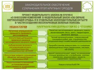 Думой законопроекта о создании лесопарковых зеленых лесов, формирующего общие