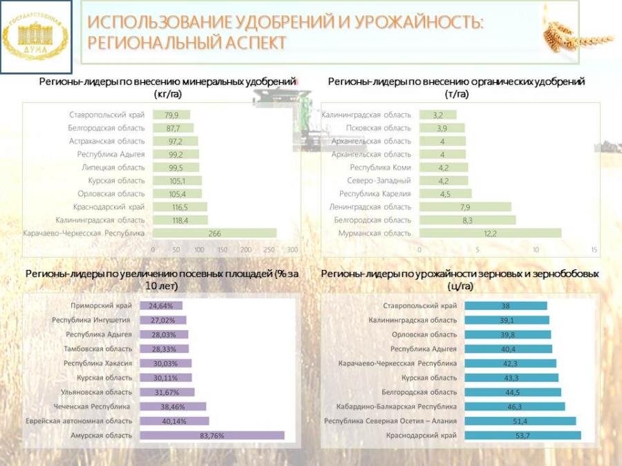 как регионы, в которых за 10 лет посевные площади были увеличены существенно.