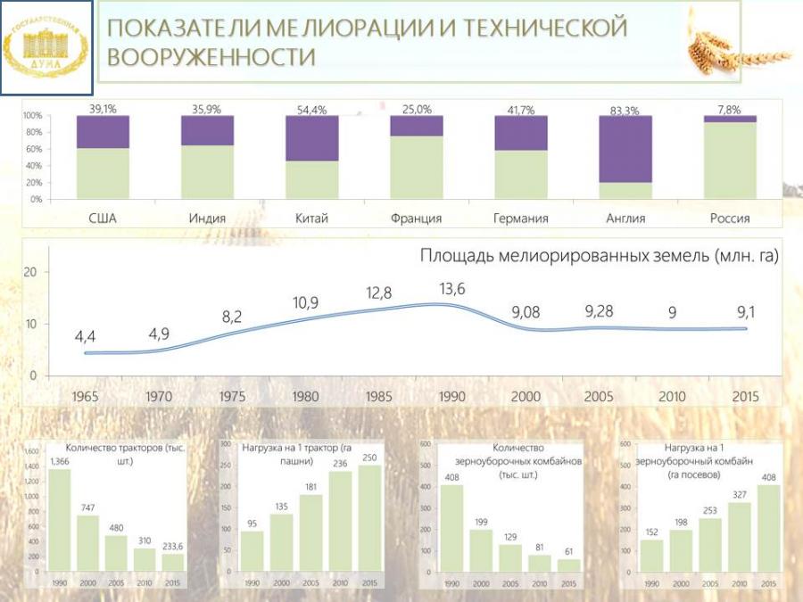 оставшихся у нас197,7 млн. га сельхоз угодий значительная часть подвержена