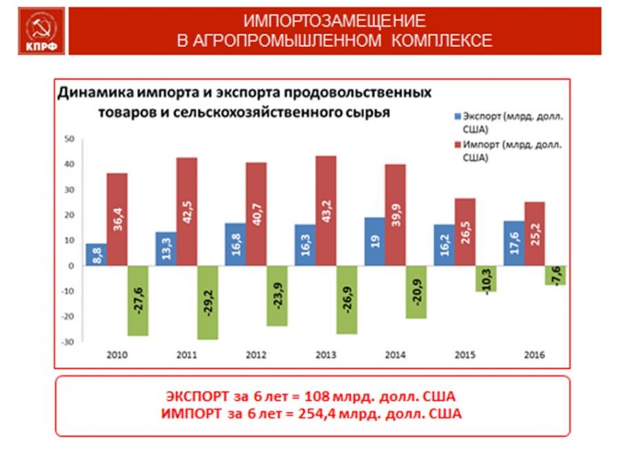 производстве сельхозпродукции в денежном выражении и поступившем по импорту, то