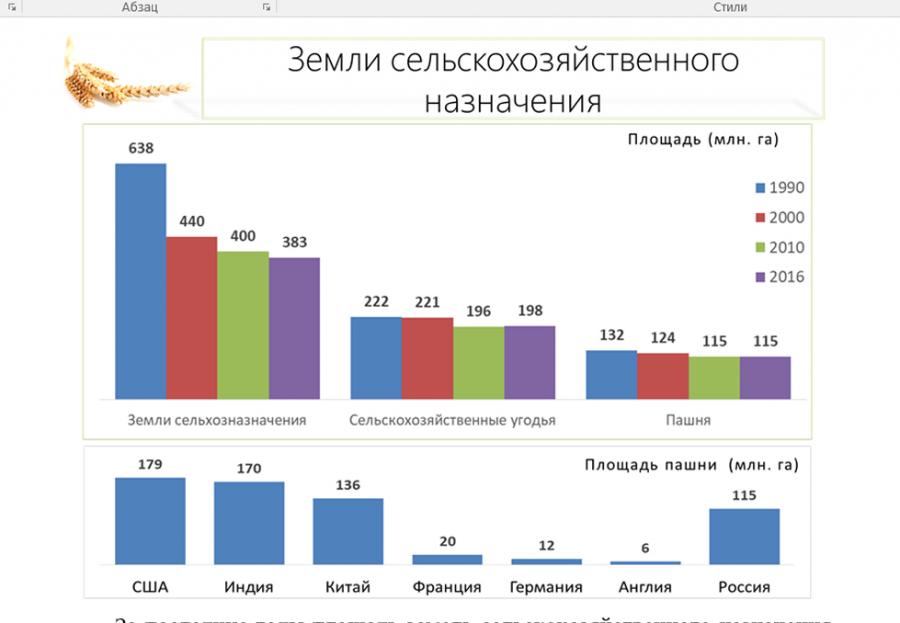 млн. га меньше чем в 1990 году. Площадь пашни за 25 лет также сократилась со