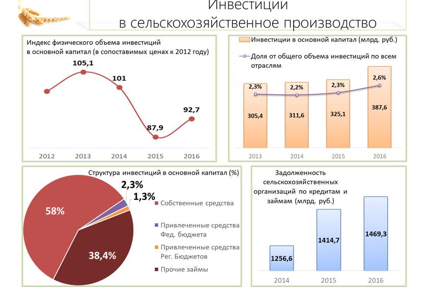 АПК. К 2016 году объем инвестиций в основной капитал сельскохозяйственных