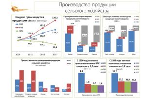 зерна, плодово-ягодной продукции, овощей, мяса скота и птицы, а также молока. Объемы