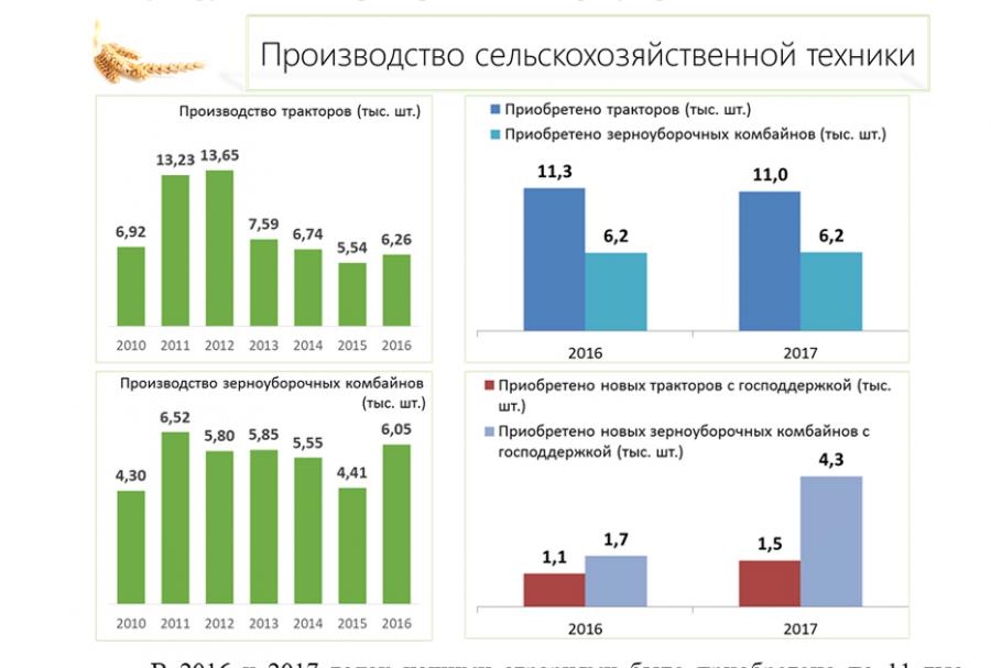 2017 году было реализовано 1,5 тыс. тракторов и 4,3 тыс. зерноуборочных