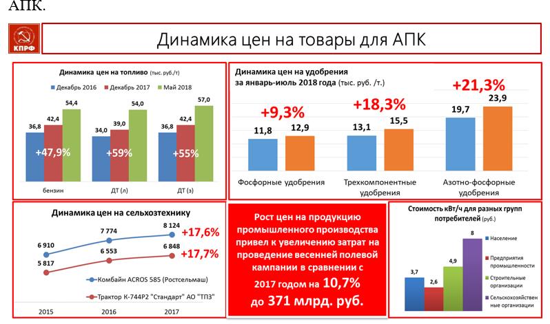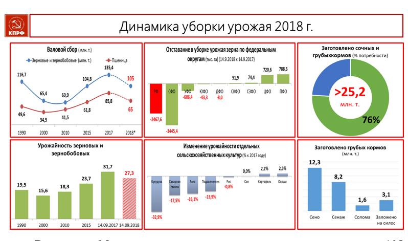 (Из выступления заместителя Председателя ЦК КПРФ, Председателя Комитета Государственной Думы по аграрным вопросам, академика РАН В.И. Кашина на пленарном заседании Государственной Думы в рамках Правительственного часа с приглашением Министра сельского хозяйства Российской Федерации Д.Н. Патрушева. Москва, Зал пленарных заседаний Государственной Думы, 19.09.2018г.)