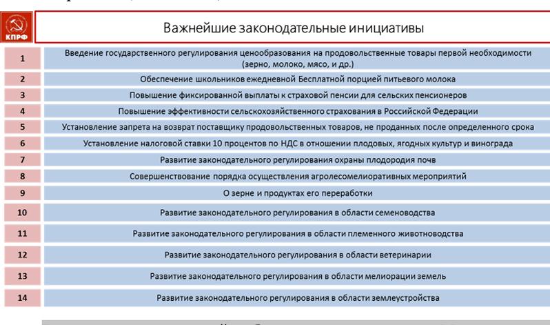 программы развития сельского хозяйства. Это и проект федерального закона «О