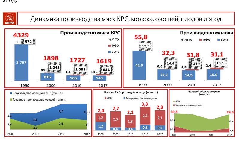При этом в личном подсобном хозяйстве, как производили 13 миллионов тонн в 1990