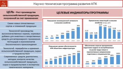 Допустим, вопрос семеноводства. На этом направлении должна быть организована конкретная работа, к которой через государственные задания должны быть подключены наши научно-исследовательские институты, опытные станции и учебные хозяйства. Это же касается и инвестиционной привлекательности, как индикатора, или кадровой системы, и ряда других вещей. Тем более что на этом направлении мы с вами приняли ряд законов, которые дают возможность действовать более активно.