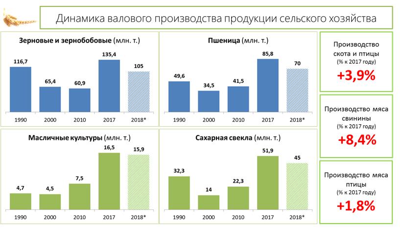 птицы (+3,9% к 2017 году), свиней (+8,4%), птицы (+1,8%). Молока, согласно