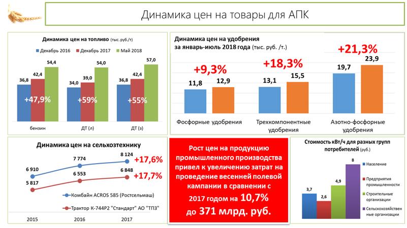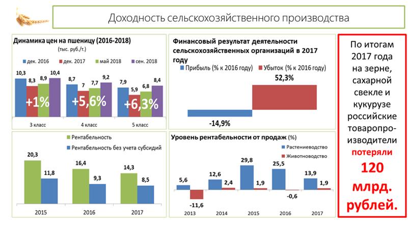 В текущих условиях добиться прибыли – задача почти невыполнимая. Даже по зерну цена на рынке только недавно вышла на уровень 2016 года (8,8 тыс. руб. за тонну пшеницы третьего класса). При этом посмотрите, как вздулись цены на продукцию для АПК.