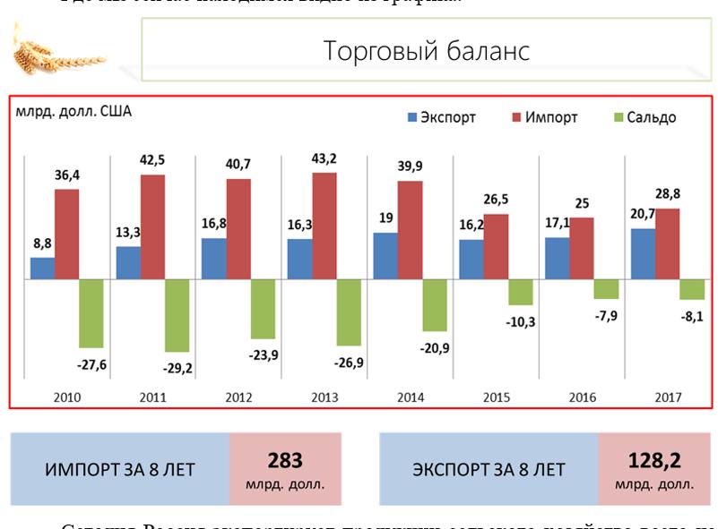 мало на 28,8 млрд. долларов! Это и молоко, и фрукты, и картофель, и мясо. Нам ведь