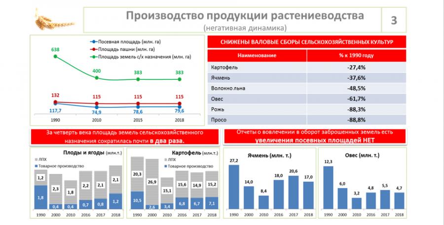 взять пашню, то и здесь 15 миллионов гектар мы потеряли. По посевным площадям