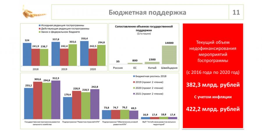 увеличения расходов бюджета на цели развития АПК, вплоть до 1 трлн. рублей в