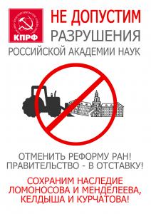 «Не допустим разрушения РАН!». Листовки отдела агитации и пропаганды ЦК КПРФ