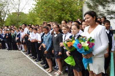 Несмотря на пасмурную погоду, в школах города звучали детские песни советского периода истории нашей страны, создавая праздничноенастроение у учителей, учащихся и их родителей.