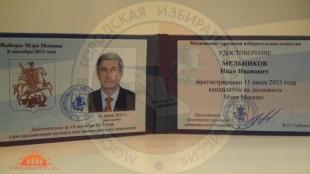 Московская городская избирательная комиссия назвала первого кандидата в мэры Москвы. Им стал И.И. Мельников. 11 июля 2013 г. в торжественной обстановке претенденту на пост мэра было вручено соответствующее удостоверение. Таким образом ,представитель КПРФ И.И.Мельников стал первым зарегистрированным кандидатом. И.И.Мельников-1-й заместитель председателя ЦК КПРФ,1-й вицеспикер ГД РФ и первый зарегистрированный кандидат на пост мэра Москвы.