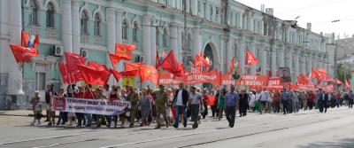 Многотысячная колонна шла по правой стороне улицы. Впереди шел оркестр, за которым следовали два автомобиля времен войны. Коммунисты и комсомольцы несли знамена, растяжки, транспаранты, портреты Ленина и Сталина. Участники шествия скандировали: «Ленин! Сталин! Победа!», «Красные в городе!», «Капитализму – нет! Социализму – да!», «Даешь правительство народного доверия!», «Зюганов! Партия! Победа!», «Красный орел реет над страной!». Эти и многие другие лозунги сопровождались троекратным «Ура!». Акция привлекла внимание жителей города. Многие прохожие останавливались, делали снимки на память, присоединялись к демонстрантам.