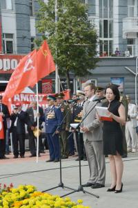 Председатель Компартии напомнил, что 70 лет назад на этой площади на единственном сохранившемся в городе здании был вывешен красный флаг с надписью «За Родину! За Сталина!». Он завершил свое выступление такими словами: «Я уверен, что наше дело правое, Победа будет за нами! Да здравствует 70-летие великой победы на Орловско-Курской дуге! Да здравствует правое дело социализма и справедливости! Да здравствует Компартия России, которая верно несет Знамя Победы вперед!».