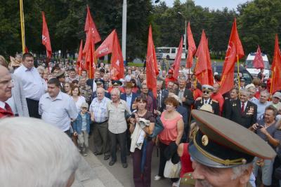 После яркого и эмоционального выступления лидера КПРФ прозвучали приветствия и поздравления глав делегаций городов-героев и городов воинской славы, стихи и песни. Память воинов, павших в боях за освобождение города, почтили минутой молчания.