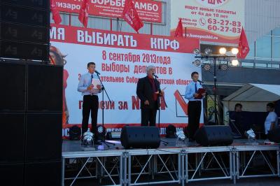Финальным мероприятием, которое посетил Анатолий Локоть в Иркутской области, стал митинг-концерт «Время выбирать КПРФ!». Ведущий митинга — известный иркутский поэт Владимир Скиф — прочитал несколько своих стихотворений с критикой правительства. «Гвоздем программы» стала известная иркутская рок-певица Юлия Андреева, а в завершение митинга все участники вместе с группой «Сполох», принимавшей участие и в новосибирском «Дне Правды», исполнили «Гимн коммунистов Сибири».