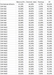 В целом по области на 20 часов явка была 37,22%, а окончательная 41,99%. Это уже должно настораживать: откуда такой рост? Это более 11% от проголосовавших. Причем, в ряде округов данные по окончательной явке лишь немножко отличаются от данных по явке на 20 ч. Но это я могу объяснить: возможно они дали данные по явке, а кто-то на участок зашел до 20 ч., но все еще не проголосовал, то есть реально проголосовали уже после 20 ч., или же какие-то списки или цифры уточнили, то есть небольшую разницу можно объяснить и она и должна быть. Сразу видно, что явка на 20 ч. и окончательная явка лучше всего совпадают там, где у ЕР самые низкие результаты. Но разницу в округе №8 (это город Шахты) уже объяснить невозможно. Явка на 20 часов там составила 25,88%. А в таблице результатов явка уже 58,28%.