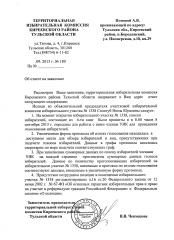 На выборах депутатов Собрания Депутатов МО Бородинское 08 сентября 2013 года я являлась наблюдателем от кандидата Муратовой Н.Ю. по направлению в УИК (Участковую избирательную комиссию) № 1338, расположенную по адресу: Тульская область, Киреевский район, деревня Сергиевское, улица Центральная дом 30 а в здании фельдшерско-акушерского пункта.