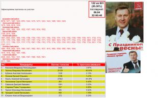 По данным протоколов с 20,30% УИК А.Е.Локоть побеждает с результатом 44,39%. У единоросса В.М.Знаткова - 40,04%