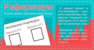 В Москве и в России с 1993 года не проводилось, ни одного референдума, а если какие-то и состоялись где-то в городах и районах, то лишь по инициативе самой исполнительной власти. Стоит отметить, что референдум в РФ является механизмом демократической процедуры, поэтому имеет полное право на существование.