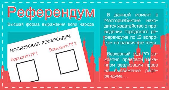 В данный момент в Мосгоризбикоме находится ходатайство о проведении городского референдума по 12 вопросам на различные темы.