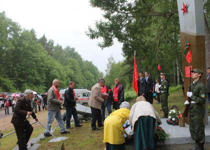 29 июня 2014 года сюда прибыли делегации из Себежа, поселка Идрица, деревень Томсинской волости, Пскова, соседних Опочецкого и Пустошкинского районов, Республики Беларусь. Торжественным внесением копии Знамени Победы к мемориалу начался митинг.