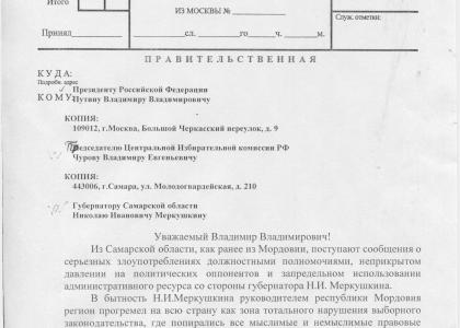 Из Самарской области, как ранее из Мордовии, поступают сообщения о серьезных злоупотреблениях должностными полномочиями, неприкрытом давлении на политических оппонентов и запредельном использовании административного ресурса со стороны губернатора Н.И. Меркушкина.