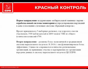 2) Первое направление модернизации «избирательной машины» партии – отработка новой системы мониторинга и предотвращения нарушений в день голосования с помощью системы «Красный контроль».