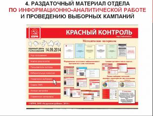 5) Четвёртое – дальнейшее наращивание качества агитационно-пропагандистского сопровождения со стороны ЦК КПРФ региональных избирательных кампаний, более активная поддержка выборов со стороны телеканала «Красная линия», выпуск креативной видеопродукции не только в формате документалистики, но и кратких видеороликов на злобу дня.