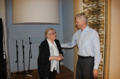 Затем в калининградском Доме офицеров состоялась встреча И.А. Ревина с участниками движения «Дети войны». Огромный актовый зал почти целиком был заполнен народом. Кандидат от КПРФ рассказал о подготовленном им в свое время законопроекте по «Детям войны», проваленном в областной Думе по инициативе единороссов, и изложил основные положения собственной программы развития области. Затем И.А. Ревин ответил на вопросы собравшихся, касающиеся не только обеспечения законных прав людей, на чье детство выпала самая страшная в истории человечества война, но и работы управляющих кампаний, роста тарифов ЖКХ, дороговизны лекарств и др. В завершение встречи состоялся прекрасный концерт народной музыки.
