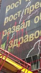 Сегодня, 11 сентября неизвестные облили краской баннер, размещенный на фасаде завода Термаль. На нем была размещена символика КПРФ и лозунг "За жизнь без страха".