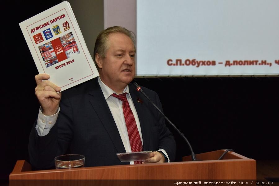 Доклад на тему «Проект концепции общефедеральной избирательной кампании КПРФ-2016 и ее сопряжение с концепциями кампаний кандидатов КПРФ, выдвигаемых КПРФ в одномандатных избирательных округах» сделал член Президиума, секретарь ЦК КПРФ С.П. Обухов.