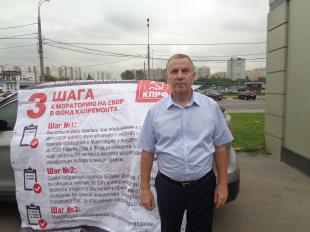 3 августа коммунисты Красногвардейского МО во главе с кандидатом в депутаты Госдумы от КПРФ Александром Медведевым провели пикет по сбору подписей местных жителей в поддержку правотворческой инициативы о моратории взносов на капремонт в районе Зябликово.