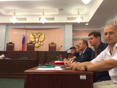 На фото: Юридическая команда КПРФ и Сергей Обухов в зале Верховного