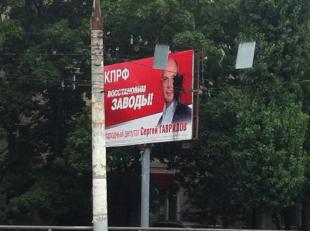 округу Сергея Гаврилова. «Срываются агитационные плакаты КПРФ, начались